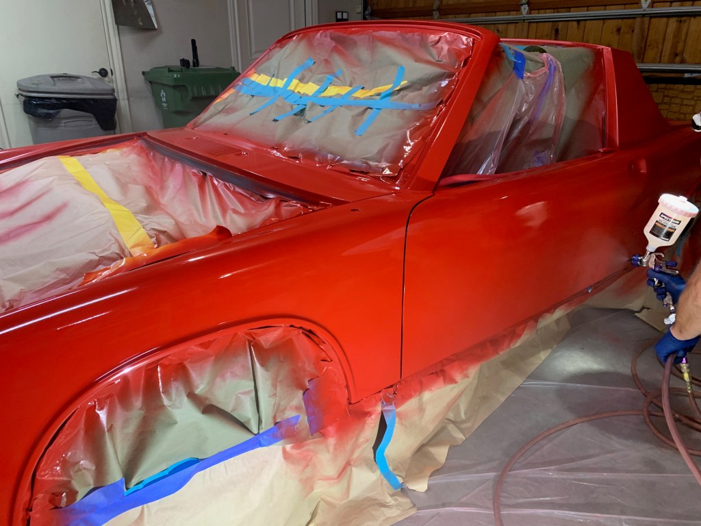 Over the past couple of months, a lot has changed, I mean a lot. so far we have stripped the paint, took it down to the metal, put a coat of primer on the Porsche, dropped the engine and transmission, and took out all of the parts in the front trunk area which includes but wasn’t limited to: gas tank, carbon air filter, air box, windshield wipers, windshield wiper motors, front springs that hold the hood down and so much more. The 914 will be shipped off for paint very soon and will probably be in the prep and paint stage for a month. While the car is in that stage, We will be working on getting the engine in Pristine shape by cleaning it, scrubbing off all grease, sanding off and painting the tins that surround the engine, replacing aluminum vacuum seals, etc. Prior to dropping the engine, We ran a compression test and the car was compressing 90 psi in cylinder 2. This shows that there is a leak in the cylinder and we aren’t getting as much horsepower as we could be getting. We either replace the seal on the piston to seal off the cylinder from any leaks, or get a kit to bore out the cylinders and replacing the crankshaft, pistons, etc., and increase the volume to 2 liters instead of 1.7 liters.